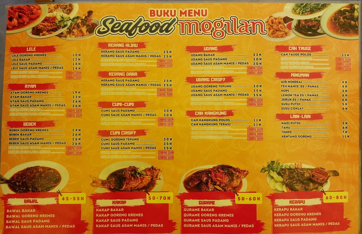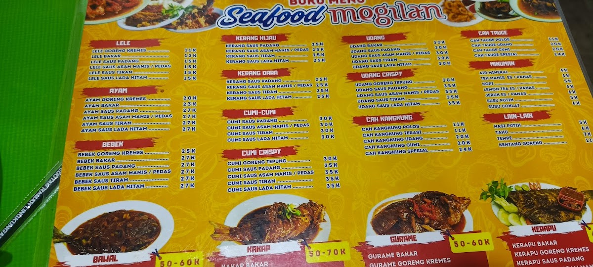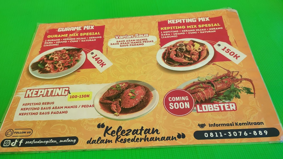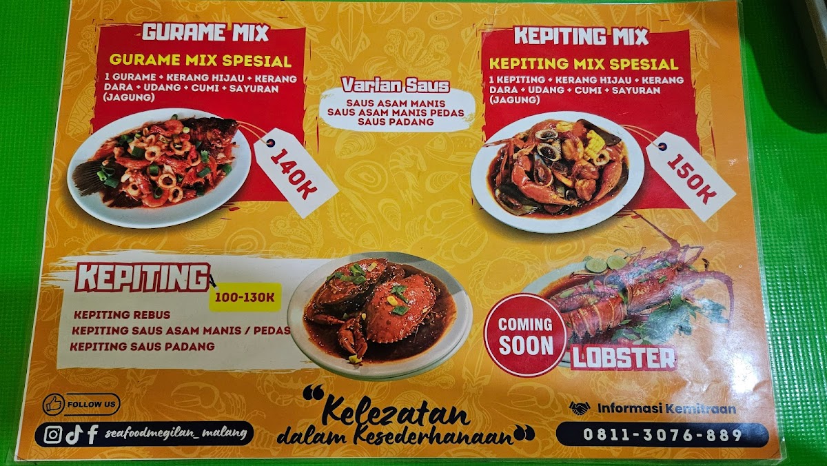 Welcome to Seafood Megilan, a delightful seafood haven located in the heart of Malang City, East Java. Just two months in operation, this restaurant showcases a vibrant menu brimming with mouth-watering seafood selections and delectable fish dishes. From the zesty Udang Saus Asam Manis to the aromatic Bebek Bakar, there's something for everyone. Diners can savor the rich flavors of Kerang Hijau Saus Padang or indulge in freshly grilled fish, all praised for their generous portions and reasonable prices.